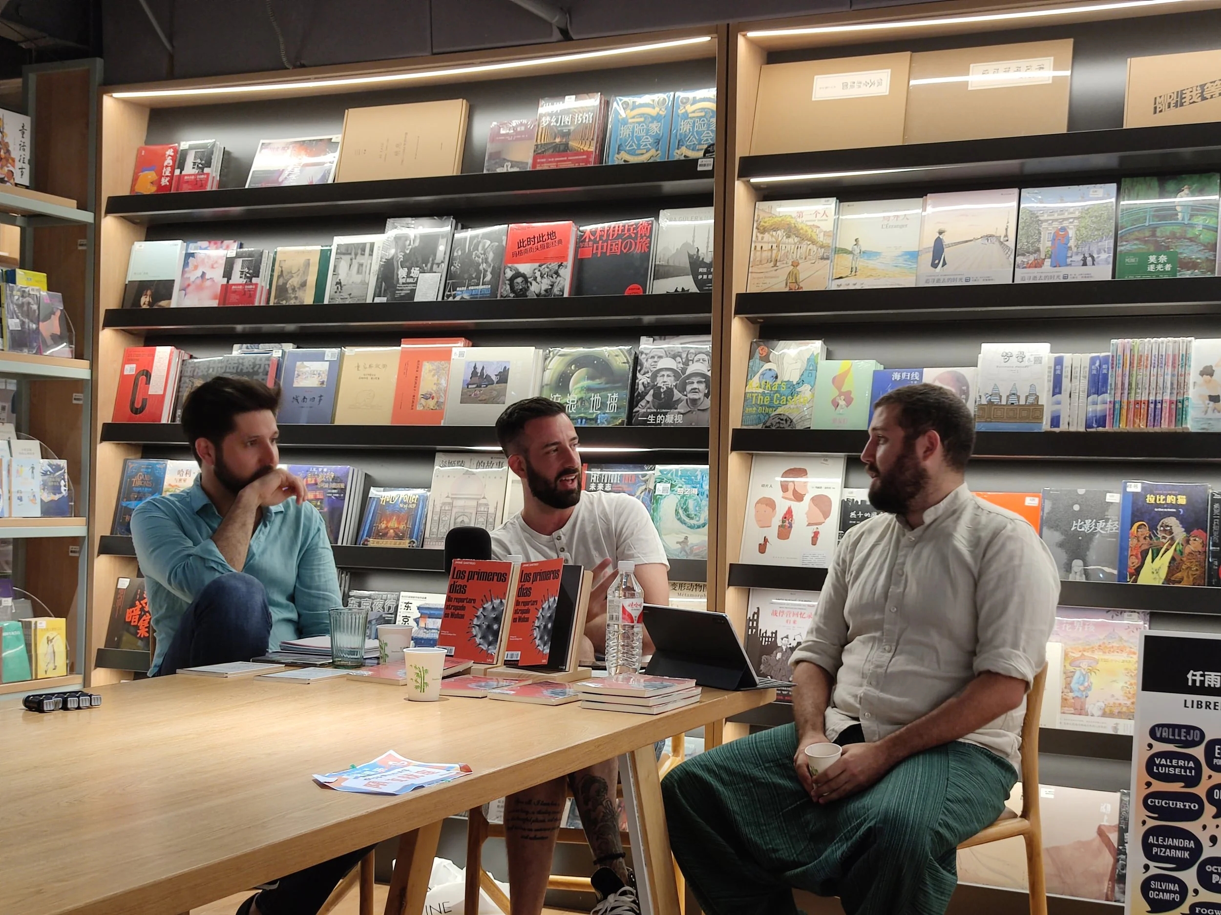 23 de julio de 2022: Presentación de ‘Los primeros días’ (Librería Mil Gotas, Pekín, China). Con Munir Hachemi y Guillermo Bravo.